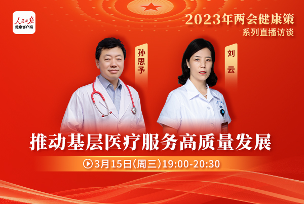 3月15日(周三)19:00-20:30,“2023年两会健康策”院长专场,邀请到了第十四届全国人大代表、中国医科大学附属盛京医院院长孙思予,第十四届全国政协委员、江苏省人民医院院长刘云做客直播间,聚焦基层医疗服务高质量发展,发挥“国家队”引领,从科研创新、人才培养等方面探讨,共话医院创新管理,为医疗行业发展建言献策。基层医疗机构是我国医疗服务体系的重要组成部分,如何推动基层医疗服务质量高质量发展?如何促进优质医疗资源下沉?“国家队”将起到怎样的引领作用?